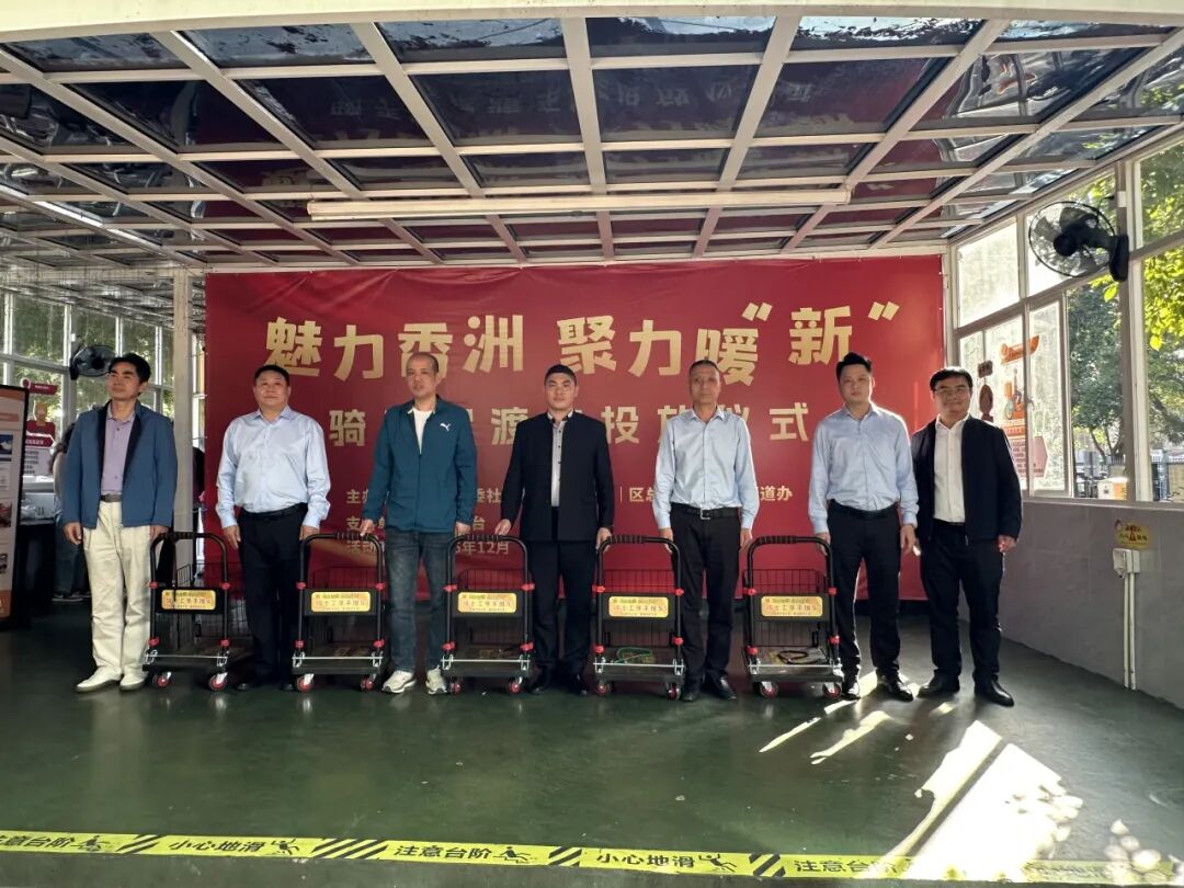 在翠香街道紫荆社区工友驿站,首批由区总工会、美团平台公司为全区30个小区赠送100台转运手推车、100台摆渡单车的骑手摆渡车捐赠仪式顺利举行。活动现场,“小哥”及物业服务人代表脸上洋溢着灿烂的的微笑,纷纷表示“有了摆渡单车,进小区终于不难啦!”“有了这些摆渡车,小区管理更加方便和安全了”。