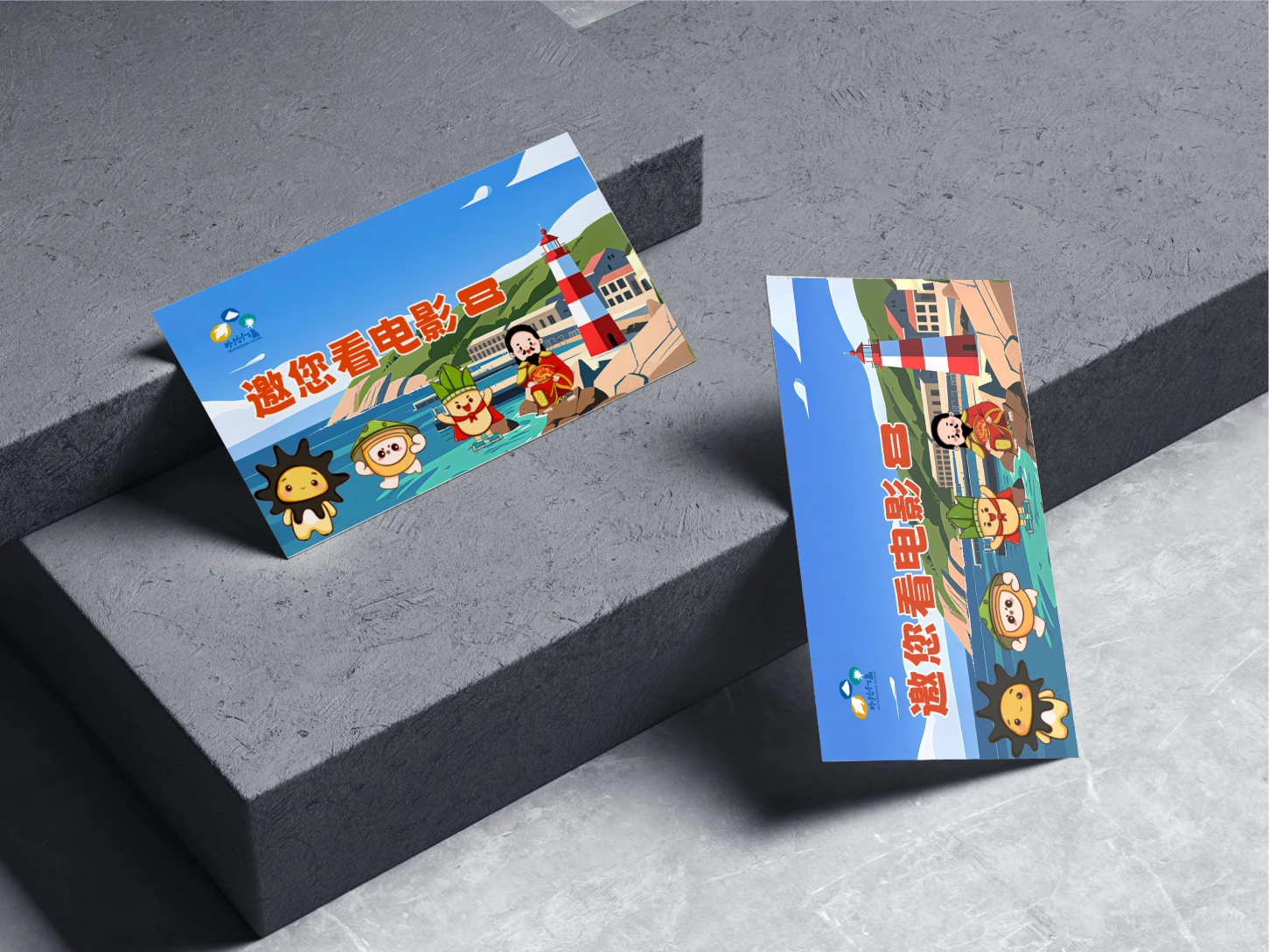 独具海岛风味:卡面设计融入海岛标志性元素,如碧海礁石和红白灯塔,并搭配太阳萌物、海岛精灵、趣味绿植角色和传统服饰人物。配上“邀您看电影”的温暖标语和品牌标识,这张电影卡不仅实用,还可作为海岛特色纪念品,实现“海岛文化 + 工会关怀”的融合。